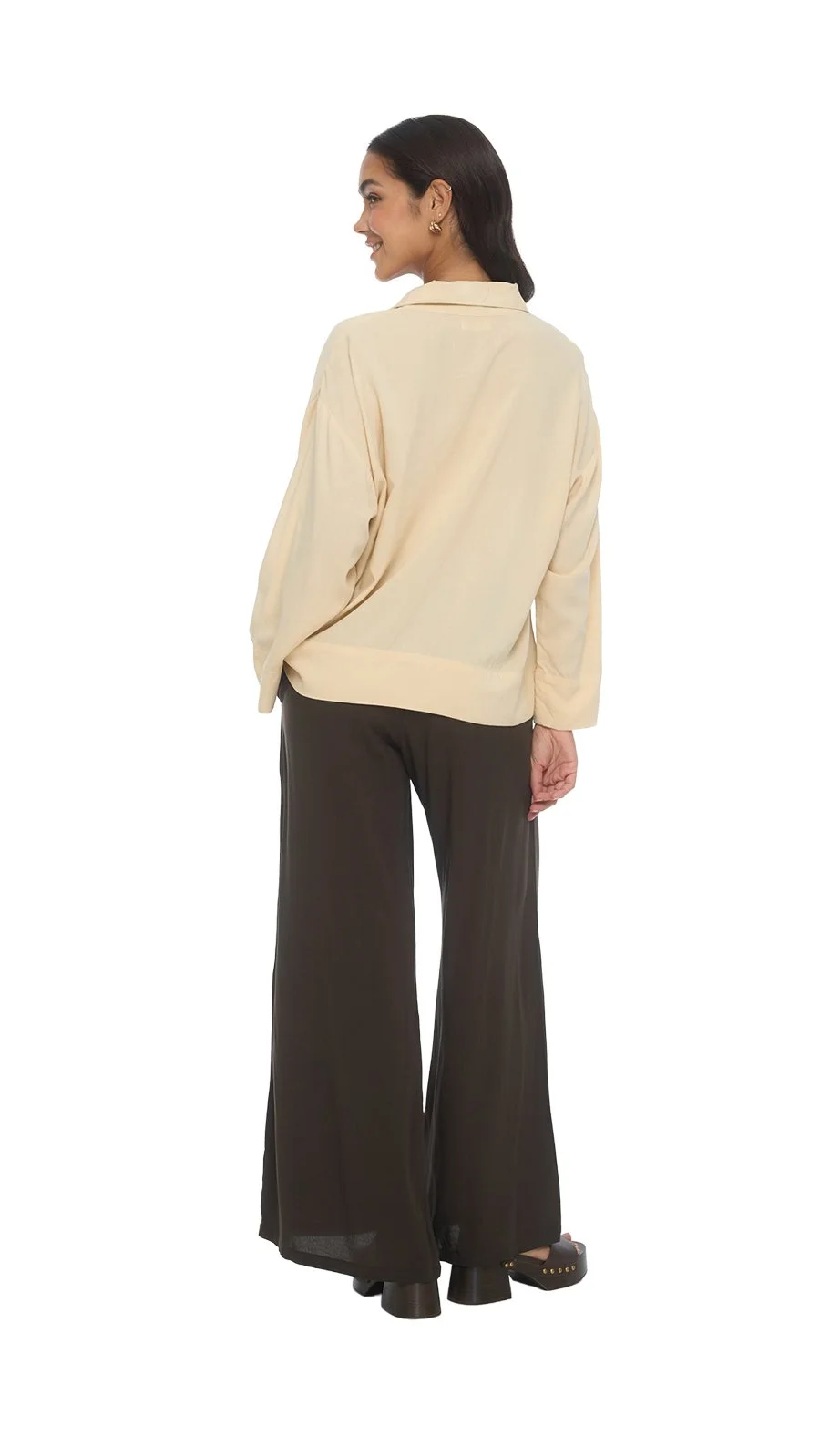 Button down long cuffed slv, ruffle back detail, collared shirt