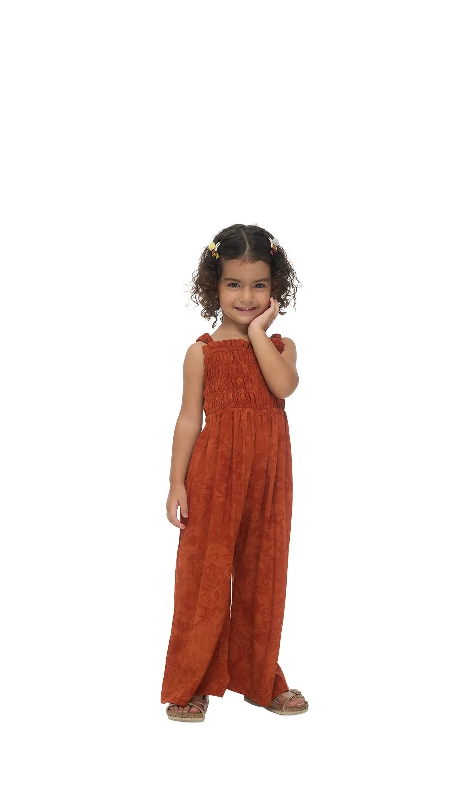 Straight neckline, elasticized shoulder strap, side pkt, smocked top jumpsuit